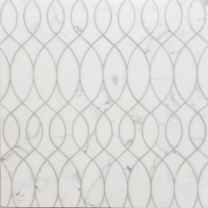 Waterjet stone mosaic, shown in polished Calacatta Tia