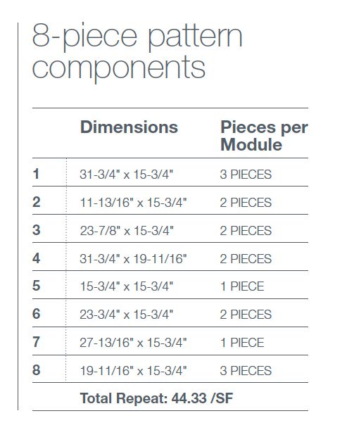 Must be ordered in full 8-piece pattern (44.33/SF)