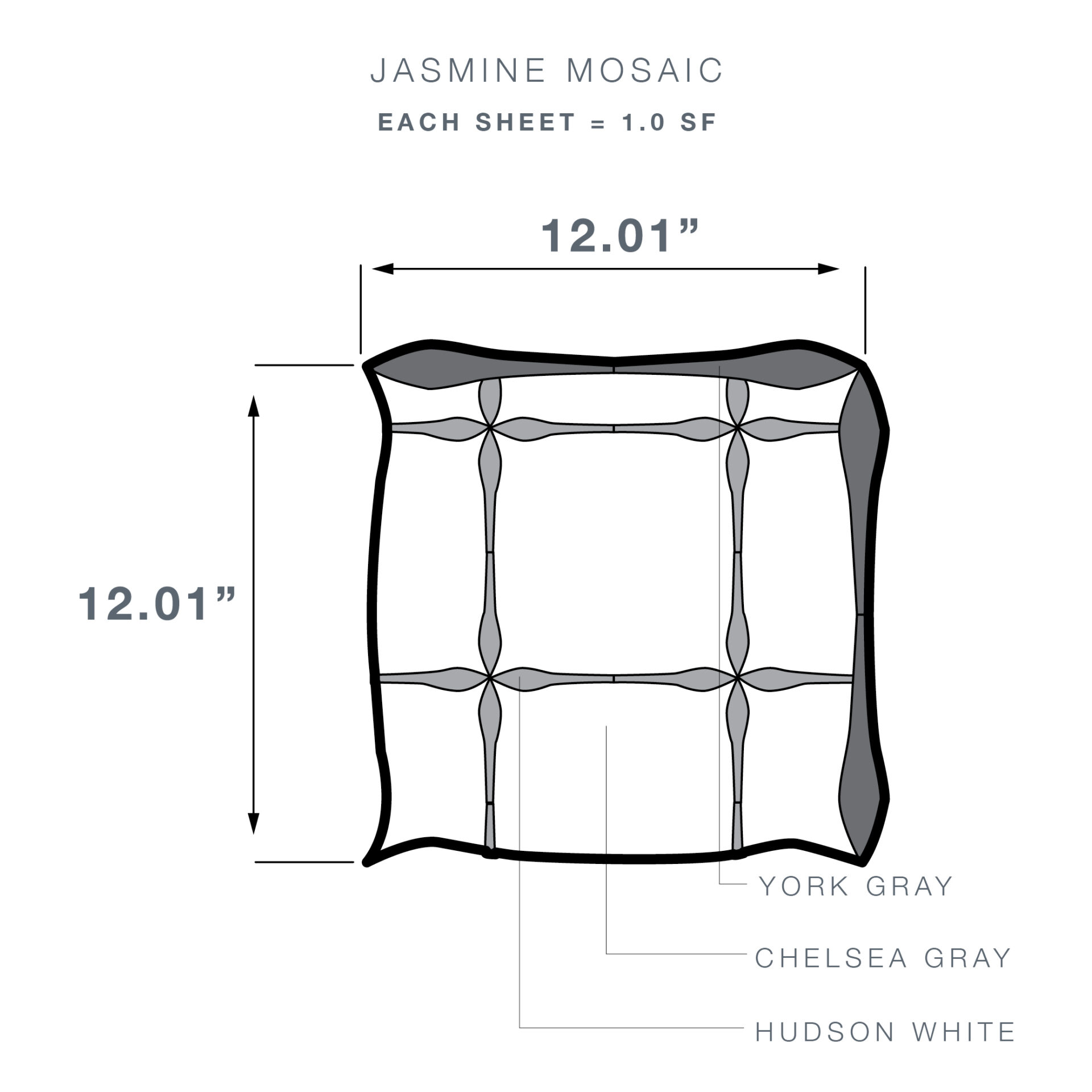 | Botanica - Jasmine | Marble - Hudson White, Chelsea Grey & York Grey | Waterjet Mosaic Tile | 12x12 in. | $108.60 /SF | Carton | 5 | |