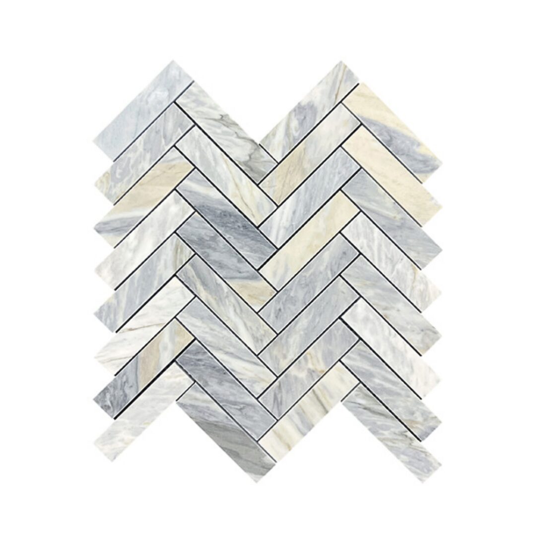 Calacatta Bluette | Marble – 1×4 in. Herringbone Mosaic | Honed