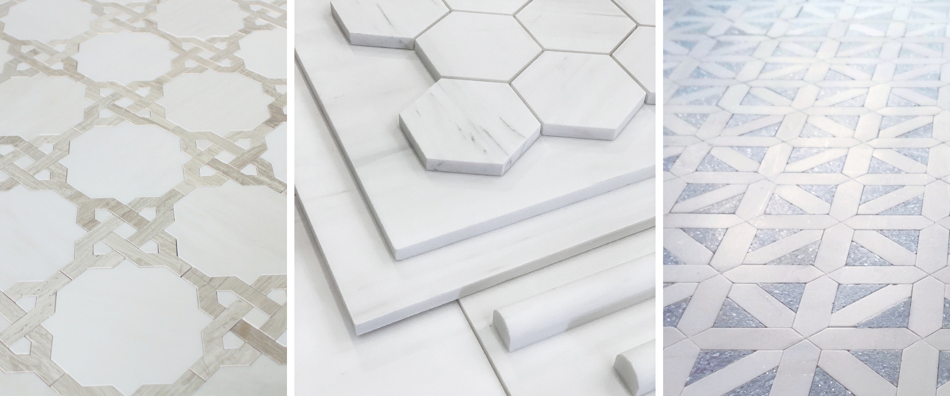 Grandview – Carlyle White | Marble – Broken Joint Mosaic | Honed