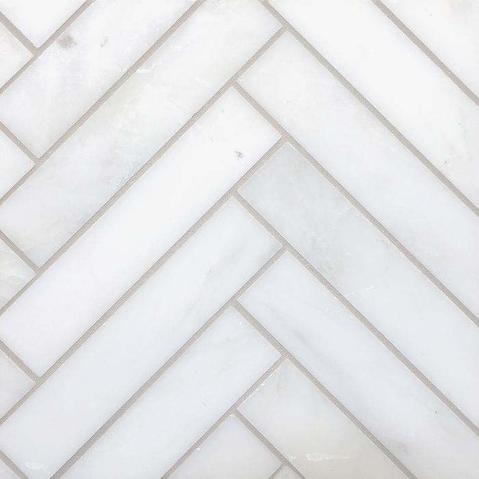 Grandview – Hudson White | Marble – 1.25×5.75 in. Herringbone Mosaic | Honed