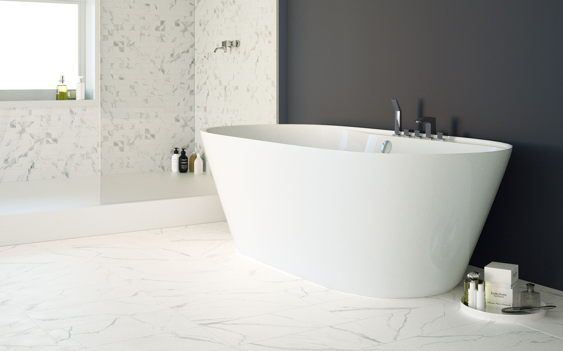 Emulating the highly desirable Statuary Marble, the Highgrove Dover Collection incorporates subtle undulations, and a luxurious satin finish for a clean and sophisticated interior