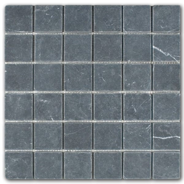 Nero Marquina | Marble – 2×2 in. Straight Joint Mosaic | Tumbled (3/8″ Thick)