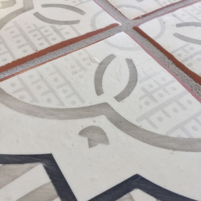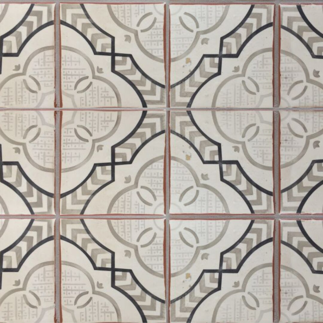 Oxford Gray Charcoal on Off-white | Terra Cotta – 8×8 in. Decorative Field Tile