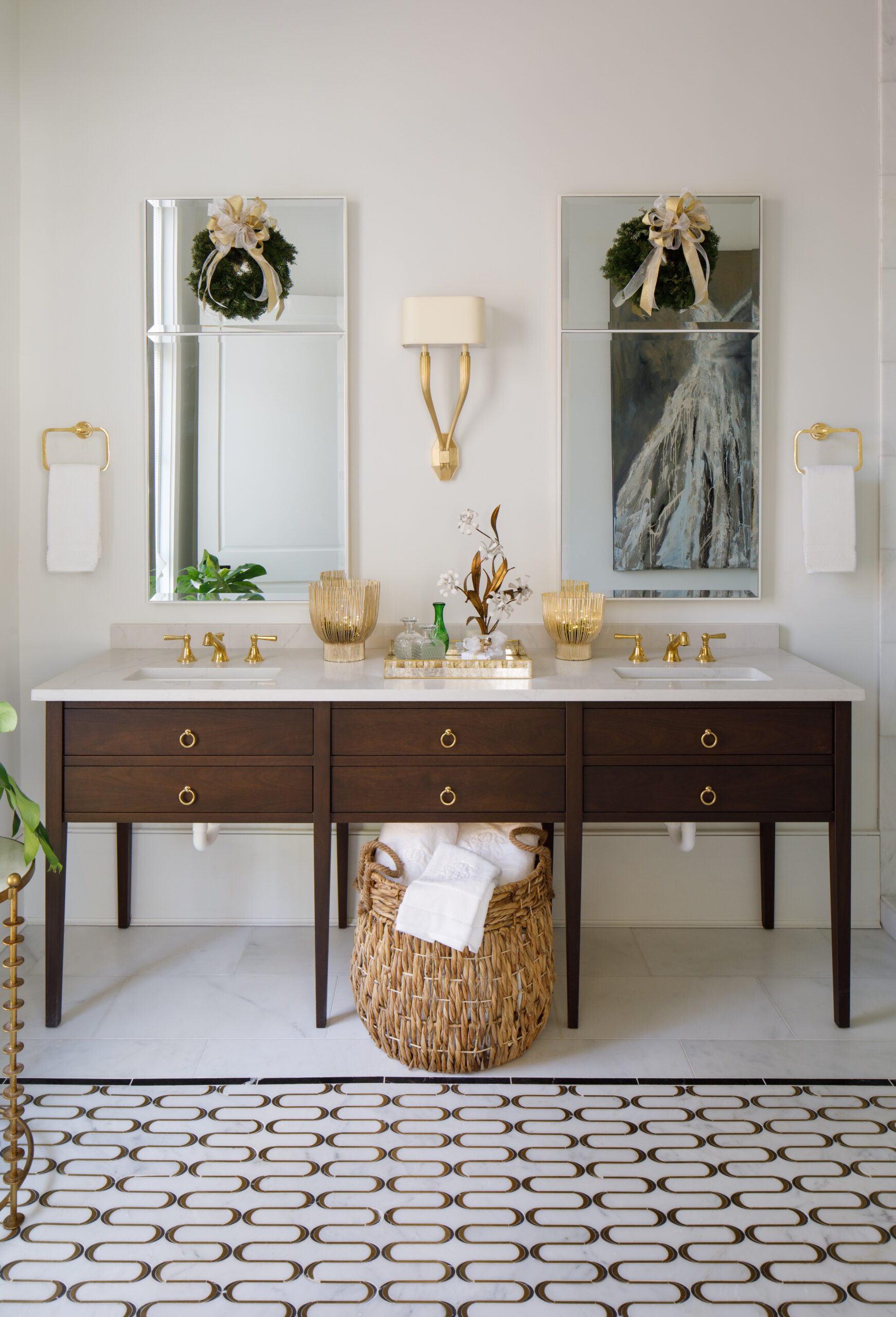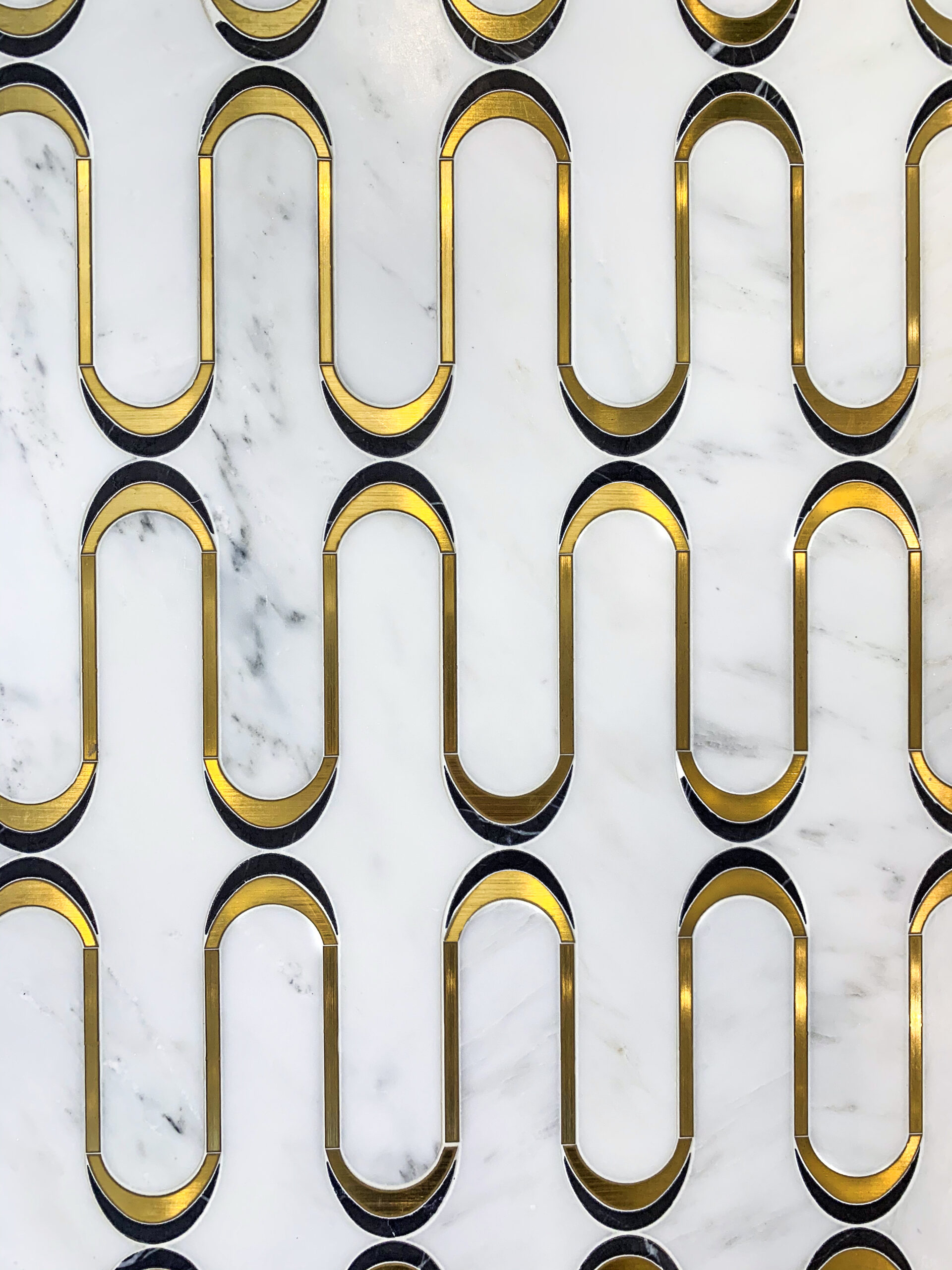 The Patine Collection is an elegant brass and marble mosaic tile.