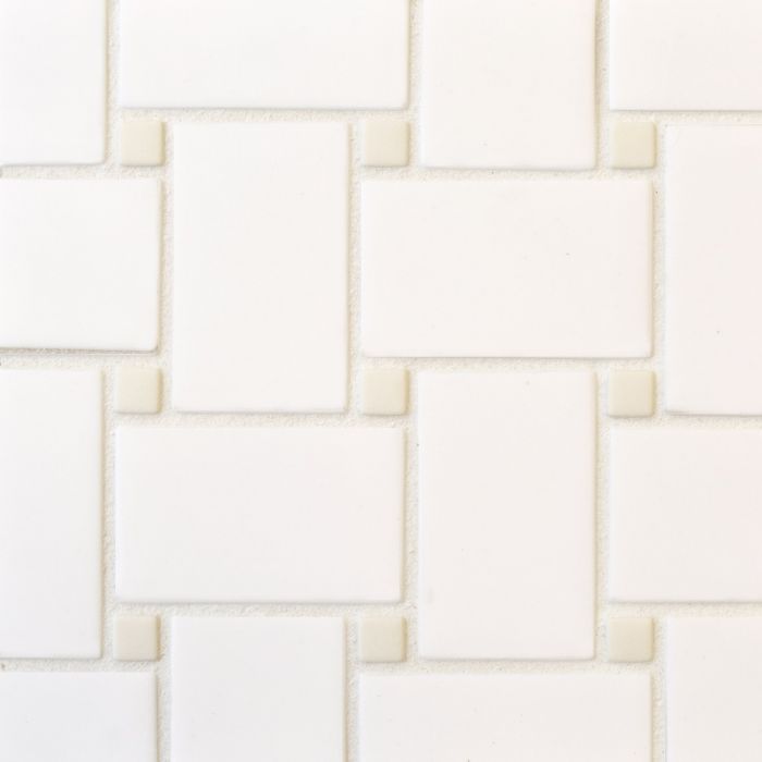 Shoal – Snow | Glass Tile – Basketweave Mosaic w/ Sand Dot