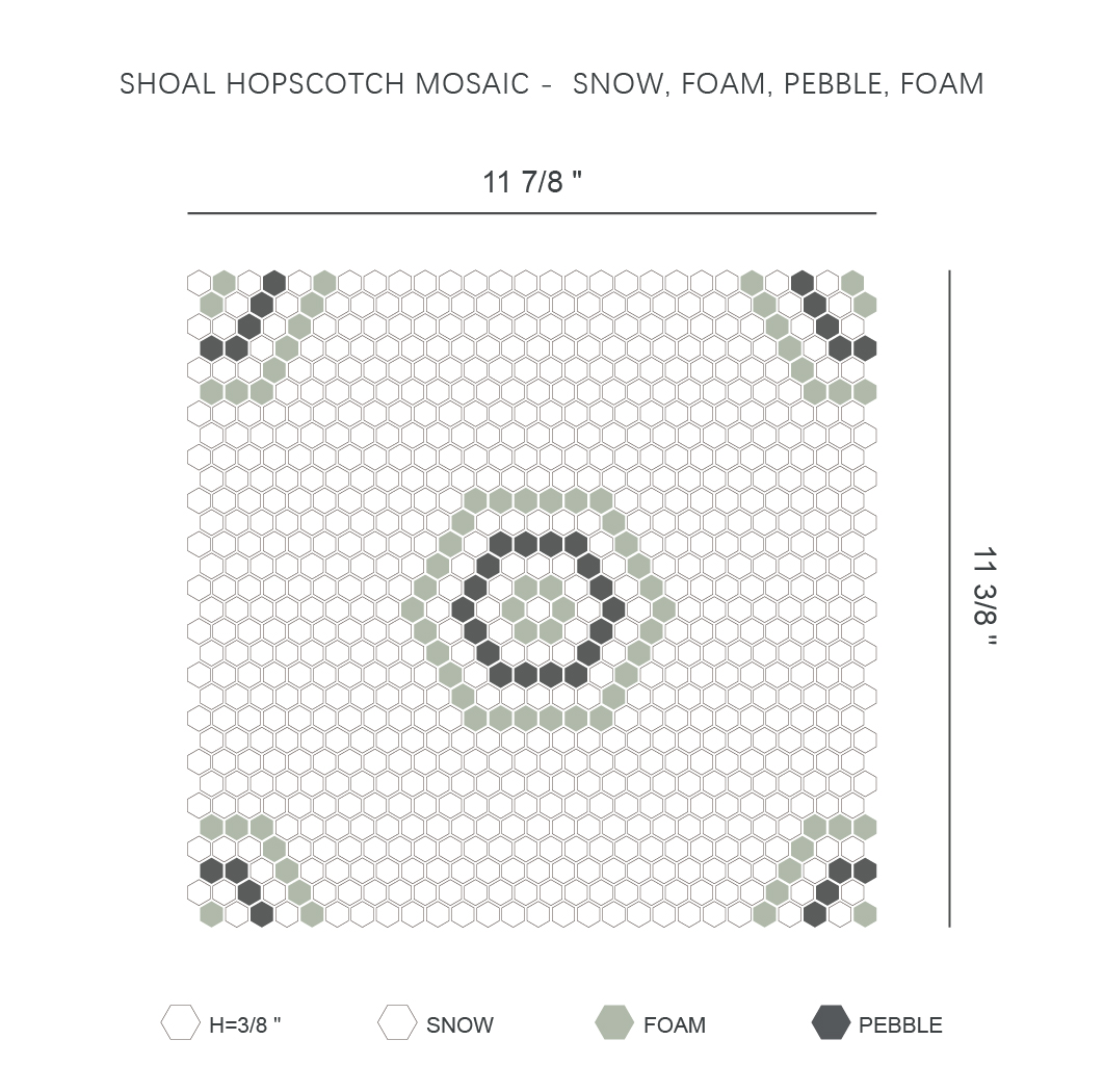 | Shoal - Hopscotch | Glass Tile - Vintage Snow, Pebble & Foam Mosaic | $27.48 /SF | Carton | 10.319 | ||