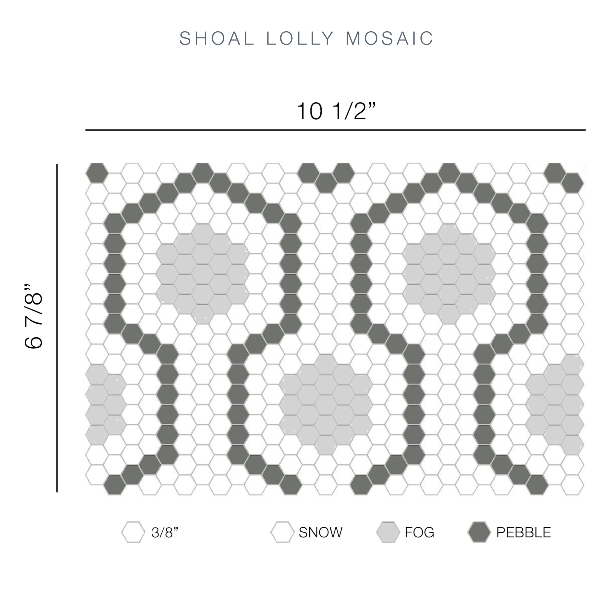 | Shoal - Lolly | Glass Tile - Vintage Snow, Fog & Pebble Mosaic | Micro Hex | $28.98 /SF | Carton | 11, 7.15 | ||