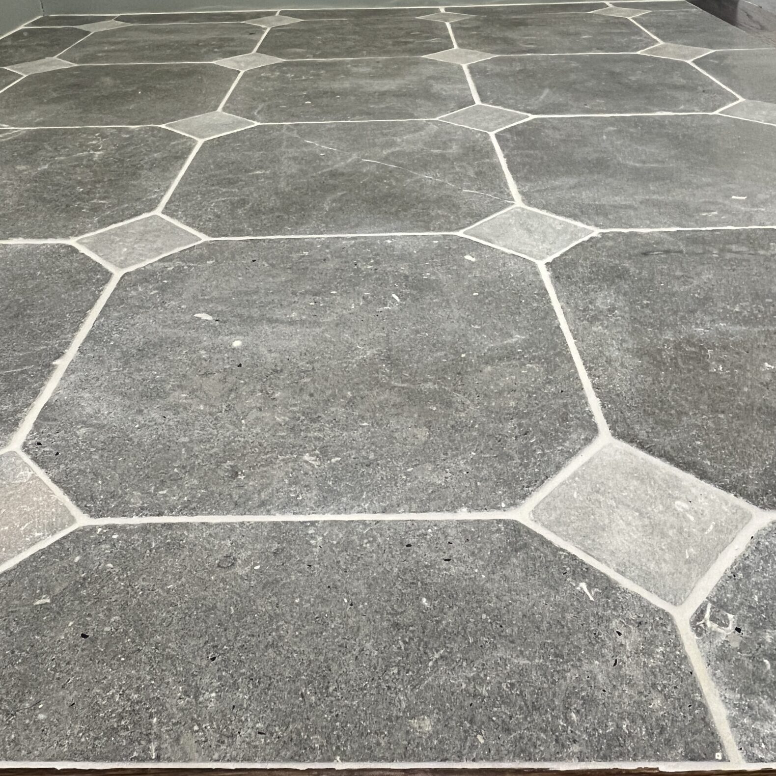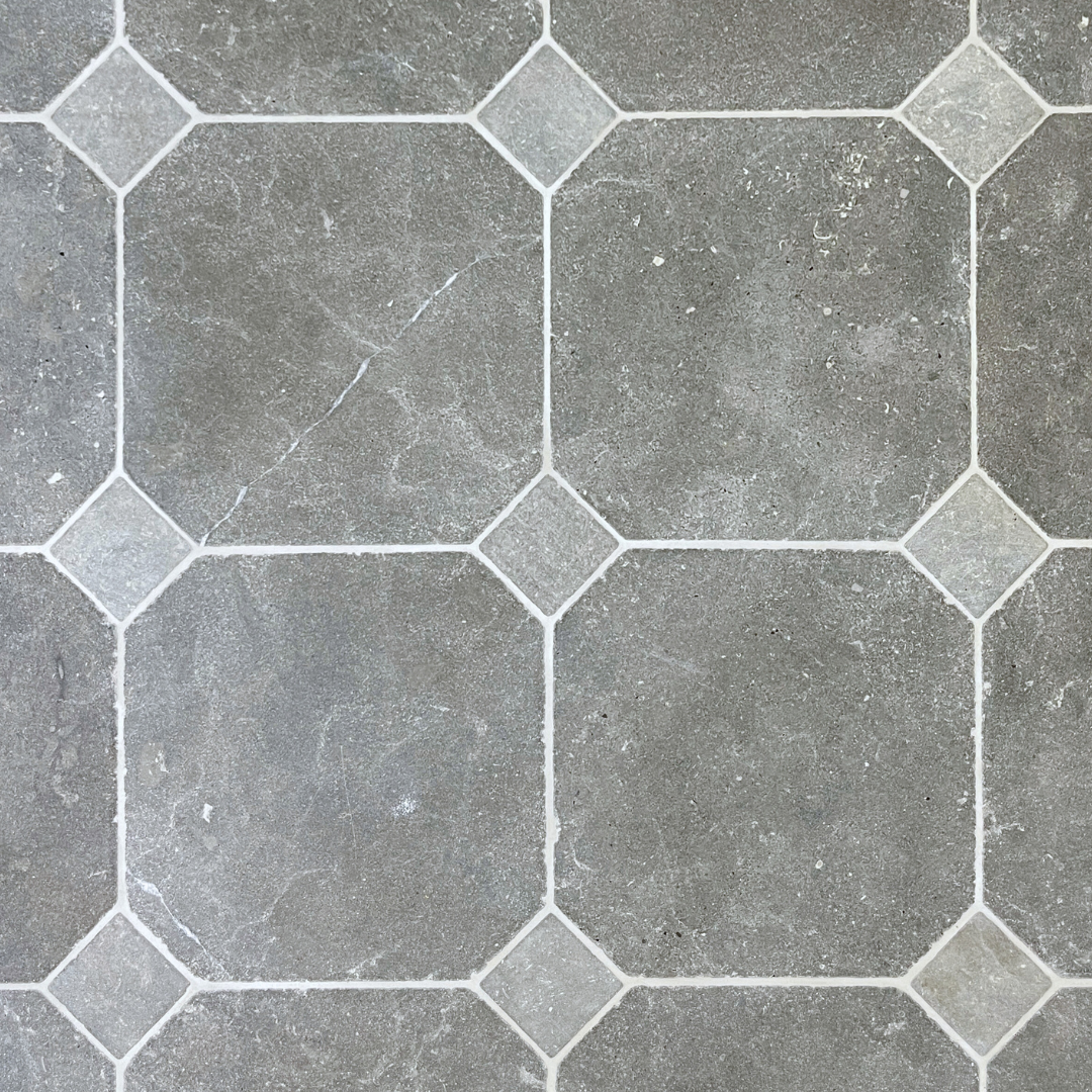 St. Bleu Loire Bar | Limestone – 16×16 in. Octagon & 4×4 in. Cabochon Dot