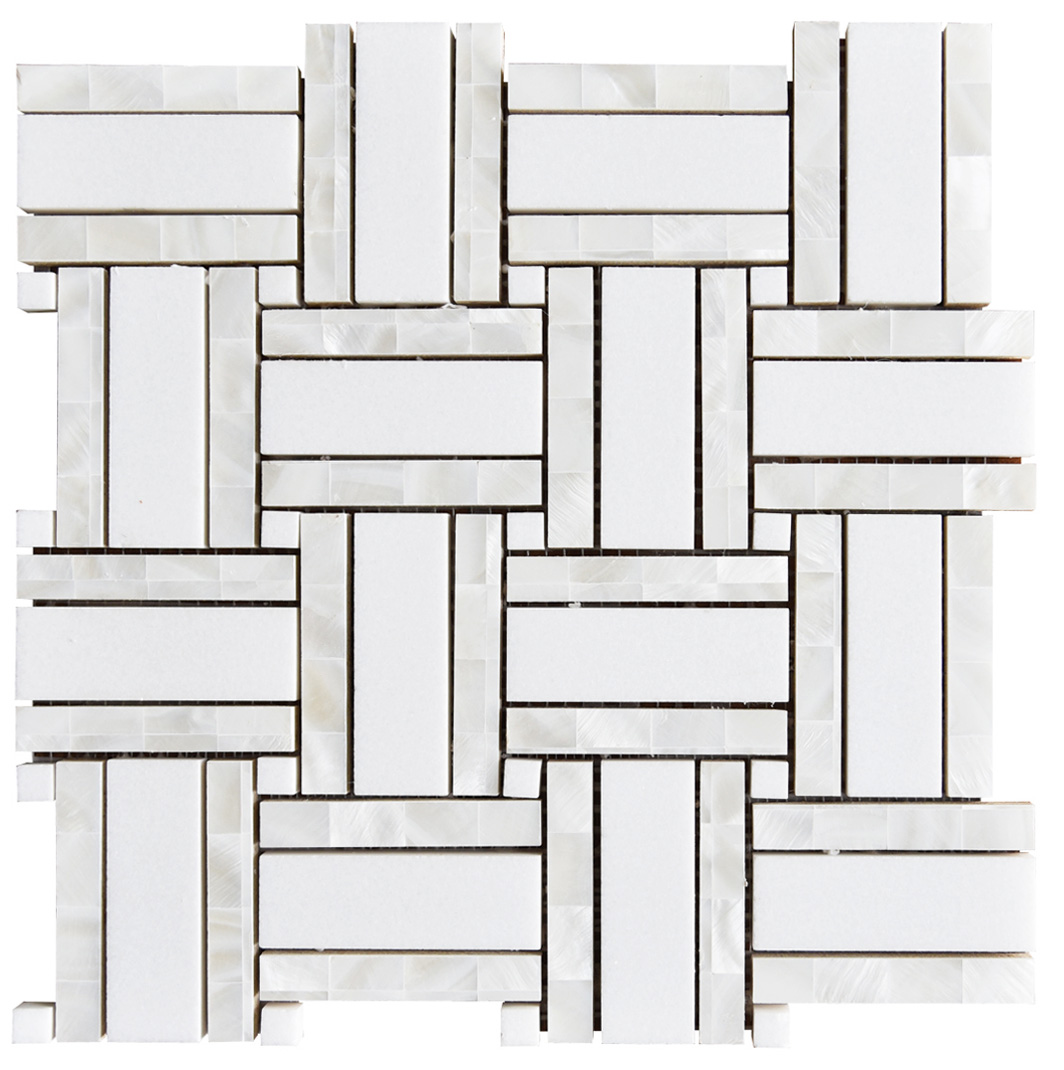 White Thassos | Royal Basketweave Mosaic w/ Mother of Pearl | Polished