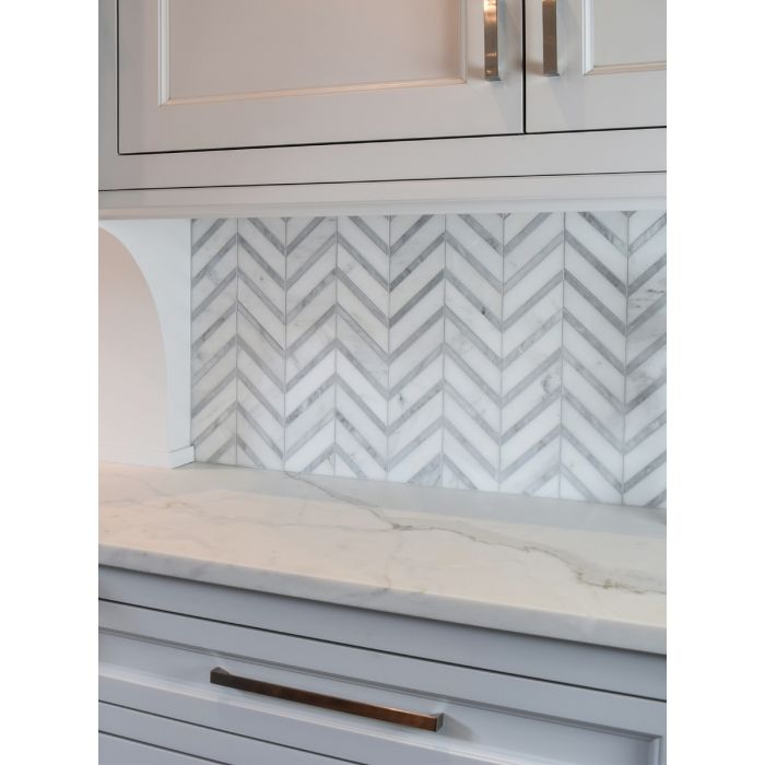 Wentworth – Waterjet Mosaic | Marble – Hudson White & St. Regis Grey
