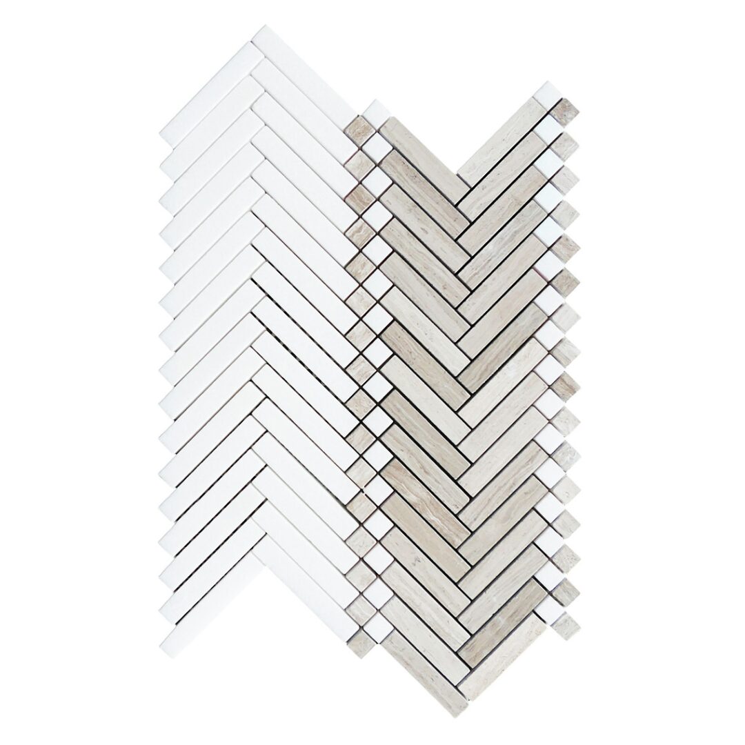 White Thassos | Manor Strip 2 Mosaic w/ White Stratta Limestone | Honed
