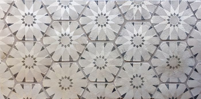 ZAHA – Silver Hex | Terra Cotta – 5 in. Hexagon Decorative Field Tile