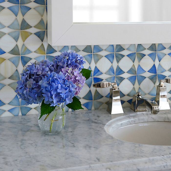 Jewel glass mosaic shown in Chalcedony and Quartz